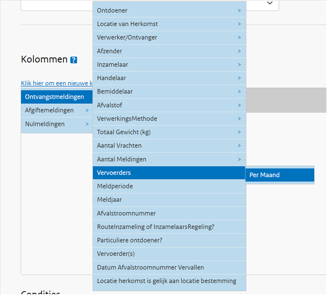 Maandelijkse vervoerders beschikbaar in Flexibele Querytool
